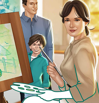 After the rough animatic, we develop and flesh out characters, background images, and props for the video. It faithfully presents the look and feel of the final animation.